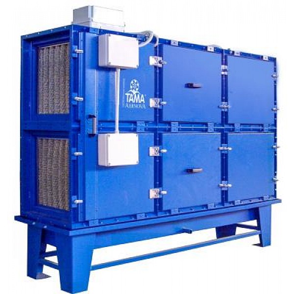 AR filter belongs to Electrostatic Line and it is composed by modular units for the electrostatic air filtration from pollution like oil fogs, dusts, welding fumes and industrial smokes in general. A very important feature of AR filters is their modularity: the smallest 3module has a filtration capacity of about 2.000 m3/h and, combining opportunely the modules, we can obtain multiple air capacities, up to 48.000 m3/h. AR Electrostatic Filters are constructed with a strong structure of bent sheet metal, suitable for the installation on the floor. The units are equipped with an inlet flange for the connection with the pipeline of the system. The filter is also equipped with an electric board for the control of the electrostatic part and, for the model with the fan, also with the start/stop controls for the suction unit.